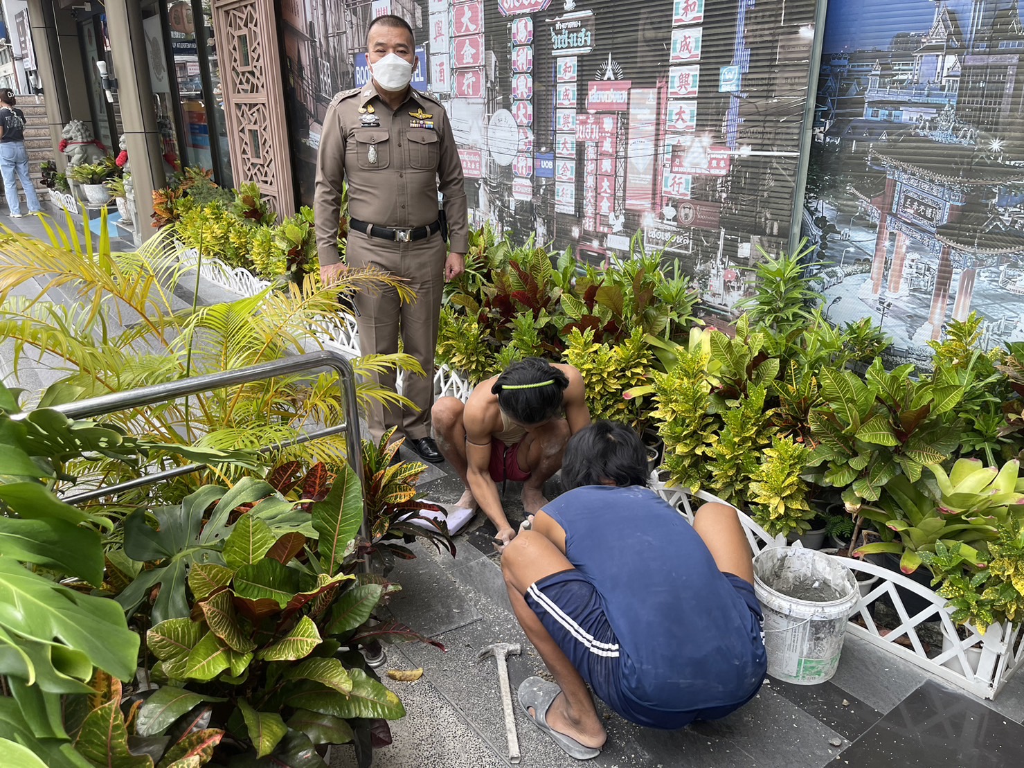 พ.ต.อ.พนม เชื้อทอง ผกก.สน.พลับพลาไชย 2 พร้อมด้วยเจ้าหน้าที่งานฝ่ายพัสดุ ได้ให้ช่างมาซ่อมแซมปรับปรุงกระเบื้องทางเดินเท้าบริเวณหน้า สน.ฯ เพื่อป้องกันการเกิดอุบัติเหตุ และปรับปรุงภูมิทัศน์บริเวณหน้า สน.
