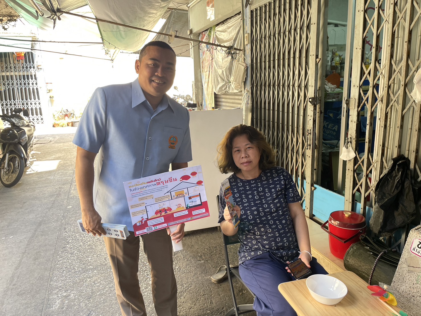 วันที่ 26 ม.ค.67 เวลา 12:00 น. พ.ต.อ.วิทวัส เข่งคุ้ม ผกก.สน.พลับพลาไชย 2 พ.ต.ท.มั่นวัตร์ เจริญชัยสมบัติ รอง ผกก.ป.สน.พลับพลาไชย 2 มอบหมายให้ ว่าที่ พ.ต.ต.นิรุต มณีพันธ์ สวป.(ชส.)สน.พลับพลาไชย 2 พร้อมด้วยเจ้าหน้าที่ ชมส. ตรวจเยี่ยมชุมชนตรอกมะขาม พบปะพูดคุยกับประชาชน สอบถามปัญหาภายในชุมชนฯ พร้อมแจกแผ่นพับประชาสัมพันธ์ ป้องกันเหตุอัคคีภัยซึ่งอาจเกิดจากการเผากระดาษ จุดธูปเทียน ในช่วงเทศกาลตรุษจีน ณ ชุมชนตรอกมะขาม แขวงป้อมปราบ เขตป้อมปราบศัตรูพ่าย กรุงเทพฯ