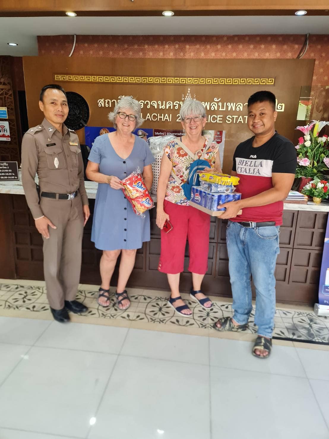 นักท่องเที่ยวชาวต่างชาติรู้สึกชื่นชม การปฏิบัติหน้าที่ของตำรวจ จึงได้นำขนมและเครื่องดื่มมาฝากให้เจ้าหน้าที่ เพื่อเป็นขวัญและกำลังใจในการปฏิบัติหน้าที่ต่อไป