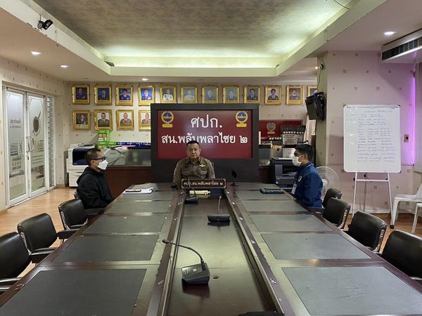 พ.ต.อ.วิทวัส เข่งคุ้ม ผกก.สน.พลับพลาไชย2 พ.ต.ท.สุทิน ยุ่นสมาน รอง ผกก.สส.สน.พลับพลาไชย 2 พ.ต.ท.พงศ์พิพัฒน์ ปุ้มตะมะ สว.(สอบสวน)สน.พลับพลาไชย 2 เข้าร่วมประชุมการติดตามการขับเคลื่อนงานขยายผลคดียาเสพติด