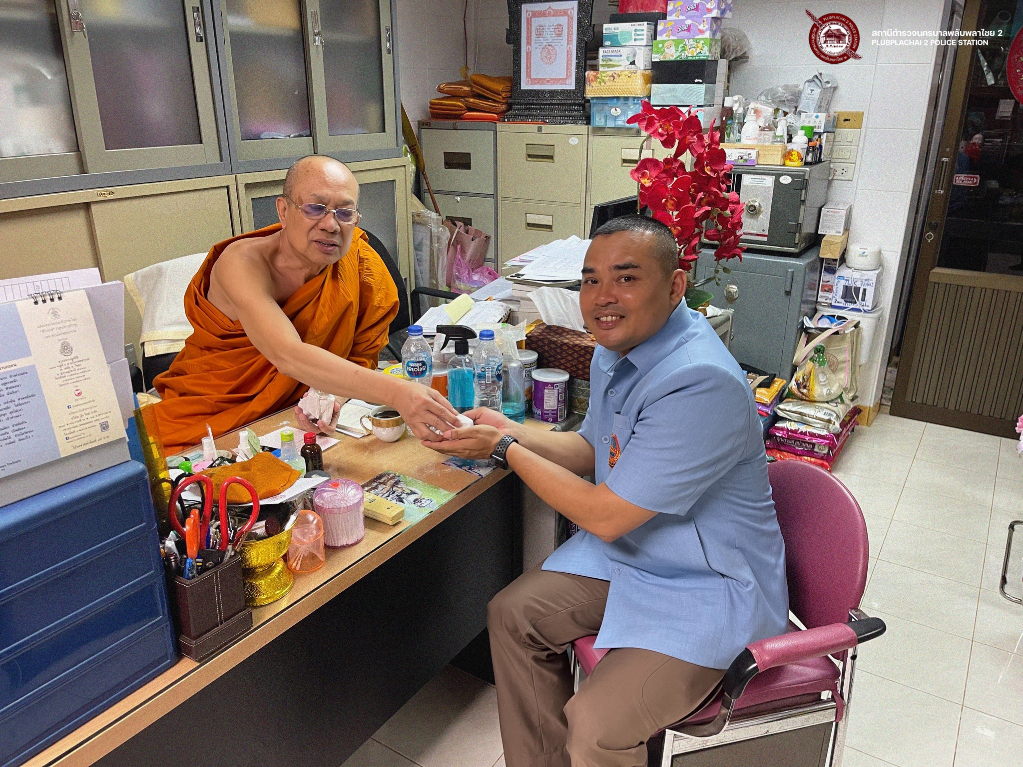 เจ้าหน้าที่ตำรวจ สน.พลับพลาไชย 2 ตรวจเยี่ยมกราบนมัสการพระราชวชิรโกศล (ภานุพงษ์ สมจิตฺโต ป.ธ.๔) ผู้ช่วยเจ้าอาวาสวัดไตรมิตรวิทยารามวรวิหาร ณ วัดไตรมิตรวิทยารามวรวิหาร