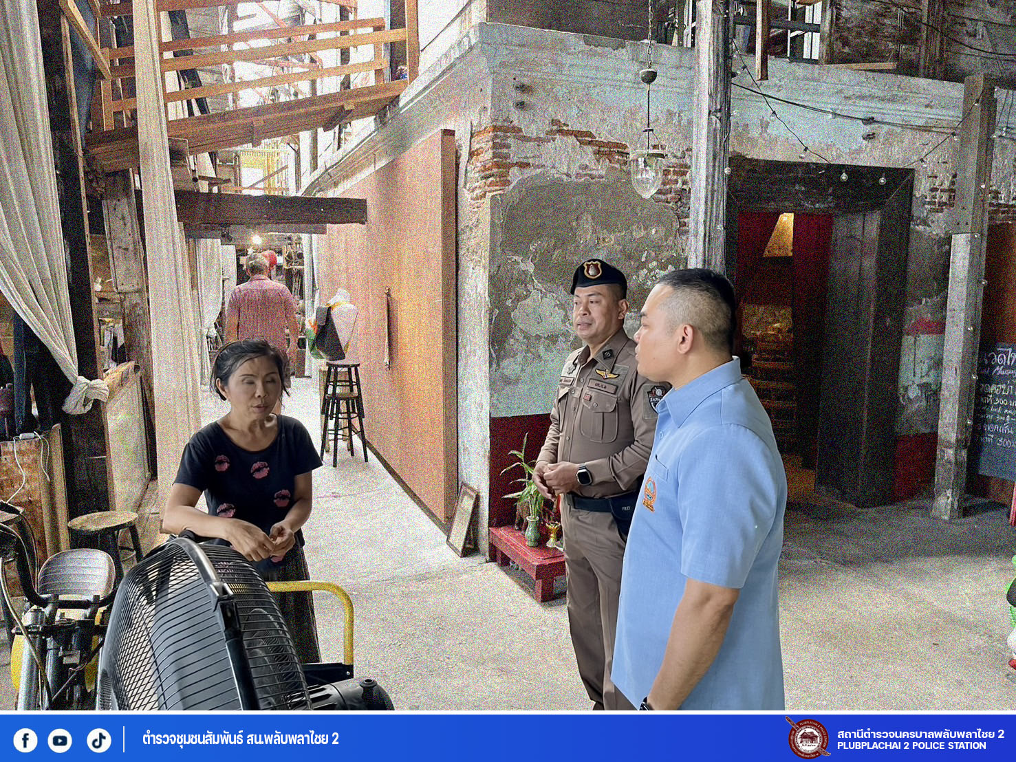 พ.ต.ต.พิเชษฐ วิเศษโชค สวป.สน.พลับพลาไชย 2 ,พ.ต.ต.นิรุต มณีพันธ์ สวป.(ชส.)สน.พลับพลาไชย 2 ตรวจเยี่ยม น.ส.ดวงตะวัน หงอสุวรรณ ประธานชุมชนตลาดน้อย และตรวจเยี่ยมพบปะประชาชนชุมชนตลาดน้อย ตามนโยบายขับเคลื่อนไทยไปด้วยกัน Strong Togerther