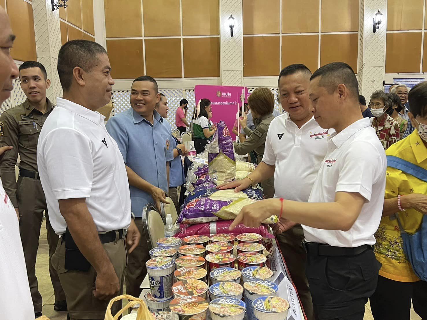 พ.ต.อ.วิทวัส เข่งคุ้ม และข้าราชการตำรวจ สน.พลับพลาไชย 2 ร่วมโครงการตลาดนัดแก้หนี้ ตามนโยบายของนายกรัฐมนตรี พร้อมตั้งบู้ทแจกข้าวสาร แก่ประชาชนผู้มาเข้าร่วมโครงการ