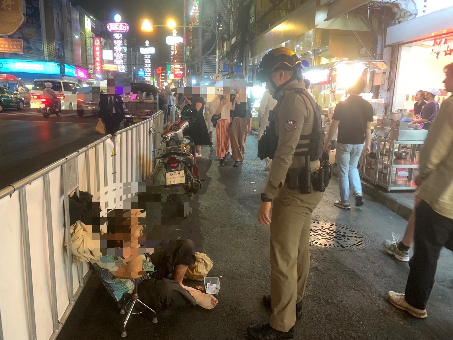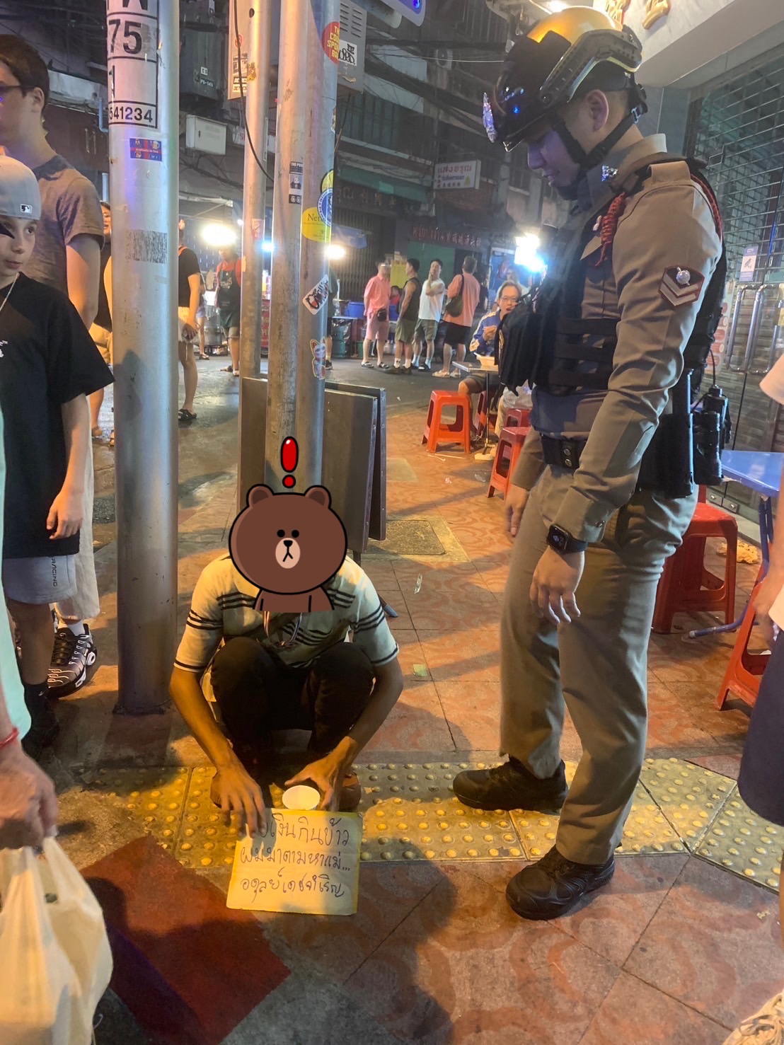 สน.พลับพลาไชย 2 ตรวจสอบบุคคลเร่ร่อน พบ บุคคลเร่ร่อนนั่งขอทาน ได้ทำการจับกุมในข้อหา ”ตัวการในข้อหาการกระทําด้วยวิธีการใดให้ผู้อื่นเกิดความสงสารและส่งมอบเงินหรือทรัพย์สินให้
