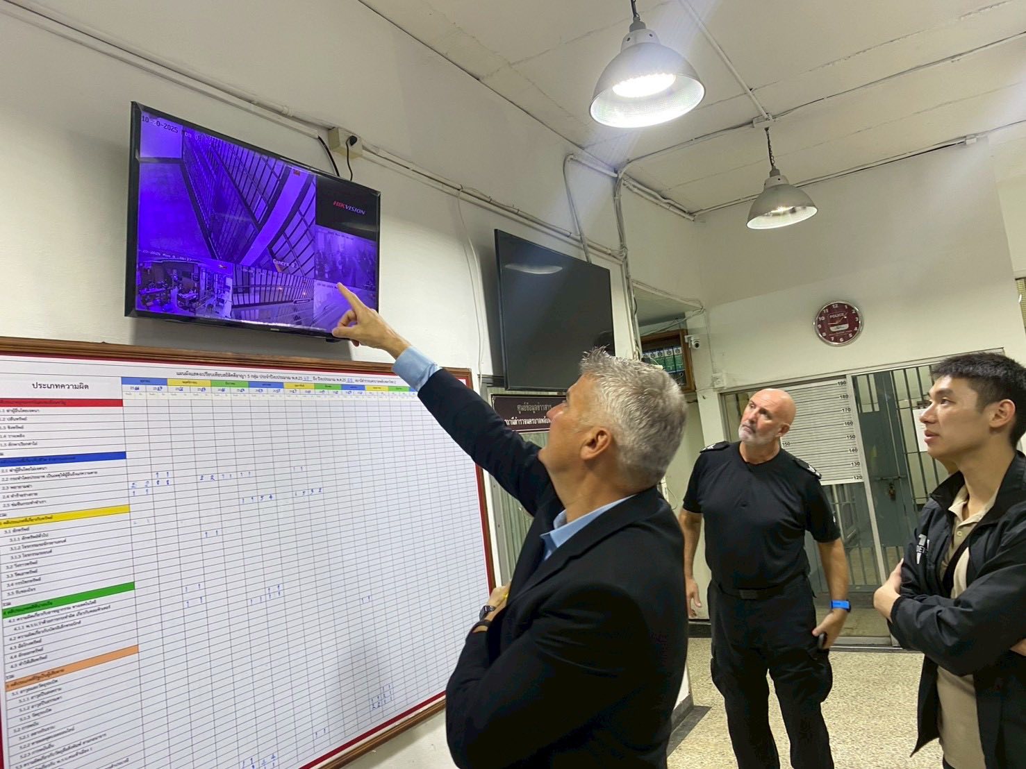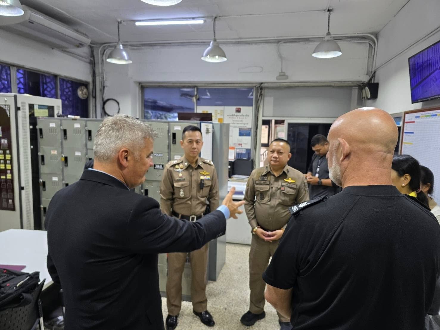 วันที่ 20 ต.ค.68 เวลา 09.00 น. พ.ต.อ.วิทวัส เข่งคุ้ม ผกก.สน.พลับพลาไชย 2 พ.ต.ท.มั่นวัตร์ เจริญชัยสมบัติ รอง ผกก.ป.สน.พลับพลาไชย 2 พ.ต.ท.พิเชษฐ วิเศษโชค สวป.สน.พลับพลาไชย 2 พร้อมเจ้าหน้าที่ที่เกี่ยวข้อง ให้การต้อนรับ คณะทำงานโครงการสถานีตำรวจนำร่อง ขยายผลการปฏิบัติในการควบคุมผู้ต้องหา ระดับ บก.น.6 และ ผู้เชี่ยวชาญจากสหราชอาณาจักร 1.Mr.david Lawes ผู้เชี่ยวชาญจาก Home Office 2.Mr.Semus Weightham เจ้าหน้าที่หัวหน้าส่วนคุมขัง Northumbria police ) และคณะทำงาน ตามกำหนดการ ติดตามการเปลี่ยนแปลง ตามคำแนะนำของคณะทำงานฯ ณ ห้องปฏิบัติการป้องกันปราบปราม , ห้องประชุม ศปก.ฯ สน.พลับพลาไชย 2