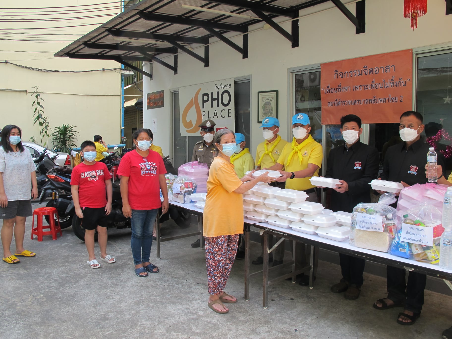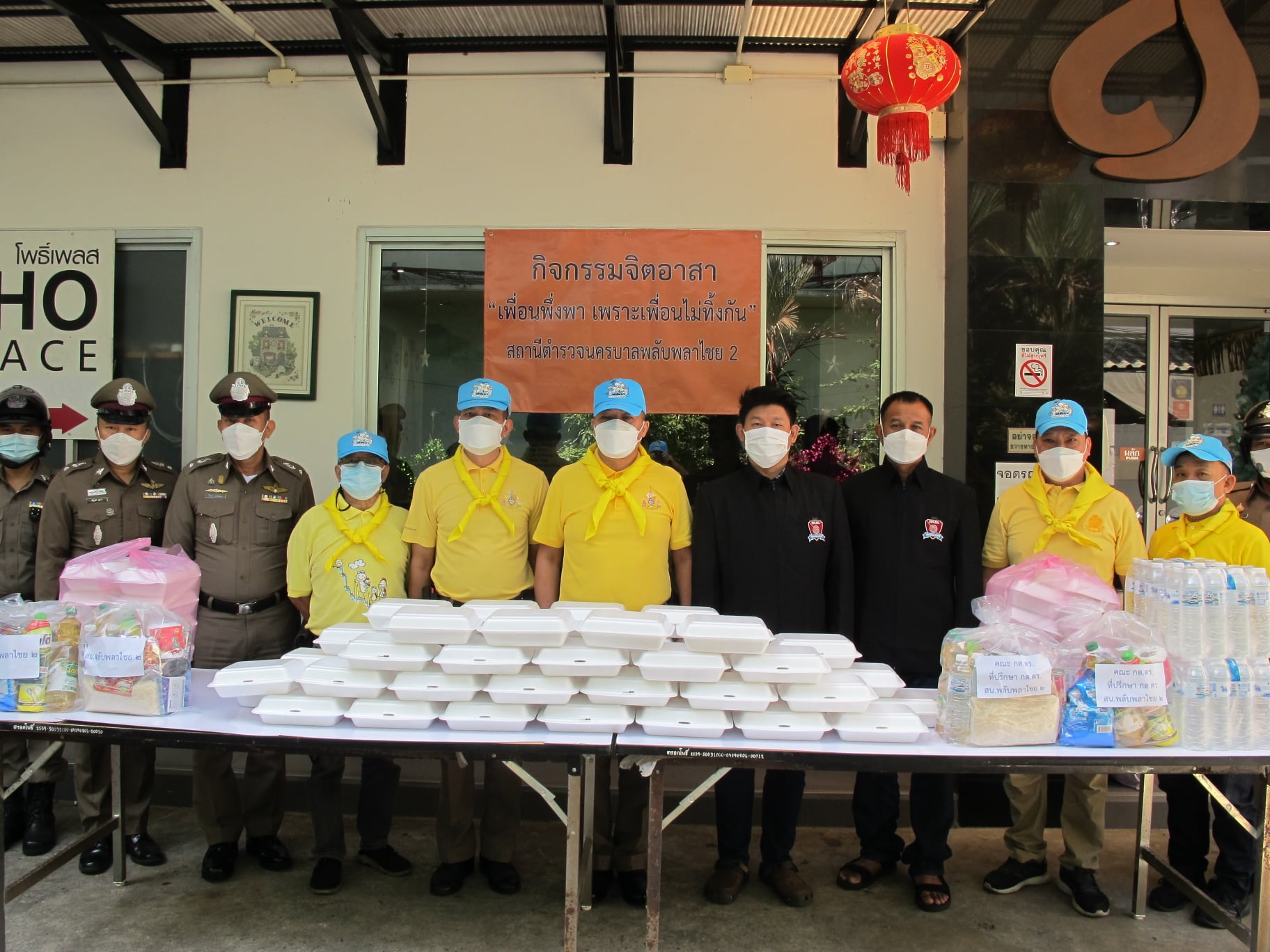 วันศุกร์ที่ 3 ธันวาคม 2564 ตั้งแต่เวลา 11.30 น. พ.ต.อ.พนม เชื้อทอง ผกก.สน.พลับพลาไชย 2 พร้อมคณะกต.ตร.สน.ฯ และจนท.ตำรวจจิตอาสาในหน่วยงาน ร่วมกันดำเนินงานกิจกรรมจิตอาสา “เพื่อนพึ่งพา เพราะเพื่อนไม่ทิ้งกัน” เนื่องในวันคล้ายวันประสูติ สมเด็จพระเจ้าลูกยาเธอ เจ้าฟ้าพัชรกิติยาภาฯ 7 ธ.ค. 64 ลักษณะกิจกรรม – จัดอาหารกล่องพร้อมน้ำดื่มไปแจกจ่ายให้ประชาชนเพื่อช่วยเหลือและบรรเทาความ เดือดร้อนในห้วงที่มีการแพร่ระบาดของเชื้อไวรัสโควิด 19 และได้รับผลกระทบจากสภาวะเศรษฐกิจในปัจจุบัน สถานที่จัดกิจกรรม - บริเวณชุมชนตรอกโพธิ์ แขวงสัมพันธวงศ์ เขตสัมพันธวงศ์ กรุงเทพฯ
