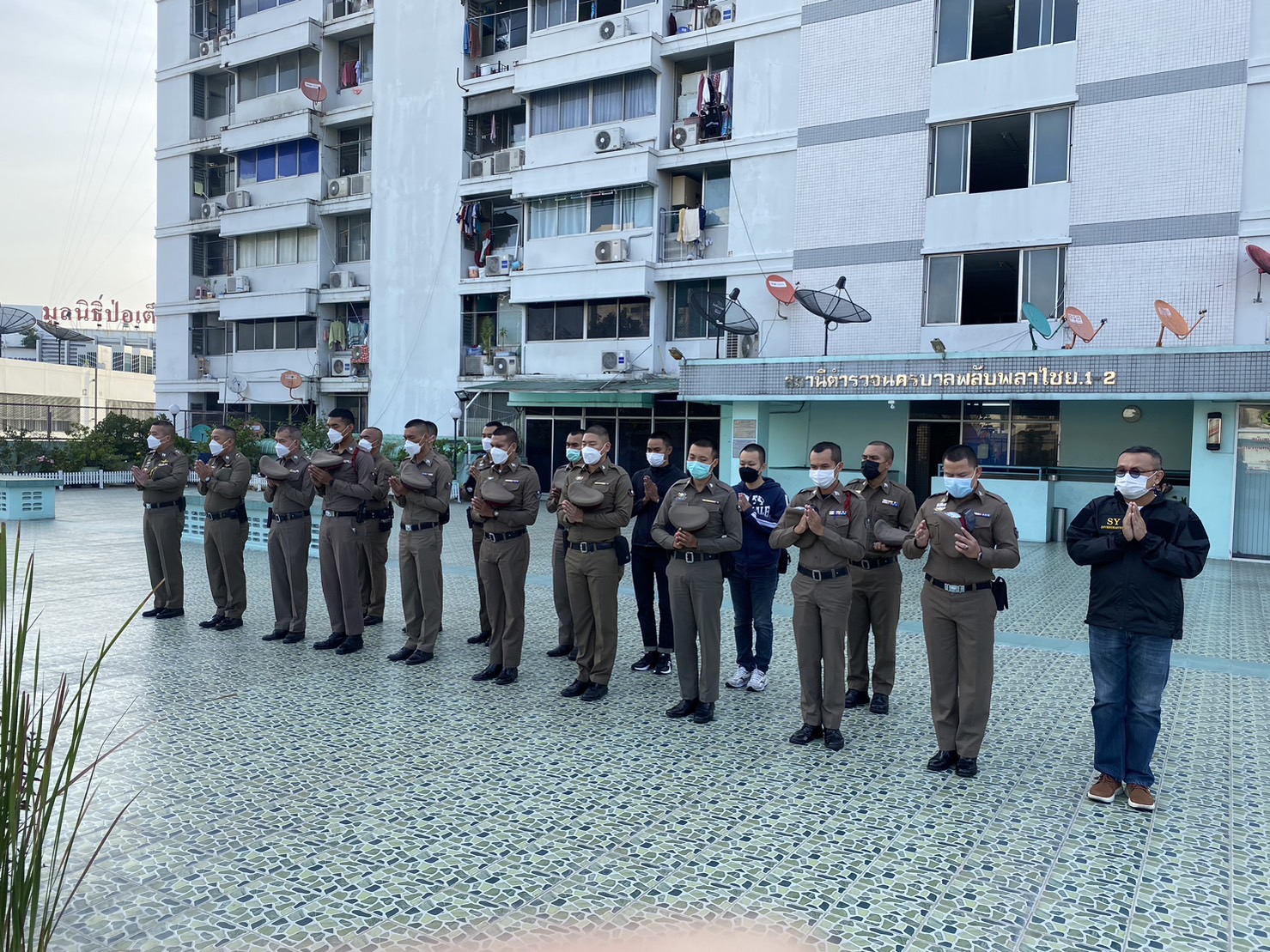 วันที่( 8 พ.ย.65) เวลา 08.00 น. สามแยก 1 (พ.ต.อ.พนม เชื้อทอง) สามแยก 2-1 (พ.ต.ท.วิโรจน์ คล้ายใจตรง) สวป.ผู้ปฏิบัติหน้าที่ ได้อบรมปล่อยแถว เคารพธงชาติ กำชับการปฏิบัติ ข้าราชการตำรวจฝ่ายป้องกันปราบปราม ผลัดเวลา 08.00 - 16.00 น. และข้าราชการตำรวจฝ่ายธุรการ ณ ลาน อเนกประสงค์ ชั้น 4 สน.พลับพลาไชย 1 - 2